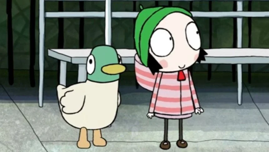 Sarah is a kind, polite, and curious 7-year-old girl with big eyes, rosy cheeks, and a distinctive green hat, who lives in a small town with her best friend, a quacky and slightly manic mallard duck named Duck. She is known for her imaginative approach to everyday life, often turning simple activities into exciting adventures, whether it's planting seeds, baking a cake, visiting the zoo, or helping a friend who seems sad. Sarah enjoys playing her tuba, drinking lemon water, watching sea cows (manatees), and spending time on the park bench. Her adventures, narrated by Roger Allam, emphasize themes of friendship, imagination, problem-solving, and empathy, showcasing her caring nature and open-mindedness toward both people and inanimate objects.
