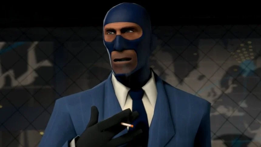 The Spy is a mysterious French mercenary from Team Fortress 2, known for his sharp suits, balaclava mask, and mastery of stealth, deception, and assassination. He specializes in infiltrating enemy lines using a disguise kit to impersonate any class on either team, an invisibility watch to become undetectable, and a sapper to disable Engineer buildings. His primary weapon is the butterfly knife, which allows for instant kills via backstab, while his revolver provides reliable ranged firepower. The Spy is also known for his smug, sarcastic demeanor, his complex relationship with the Scout—revealed to be his biological father in the game's lore—and his ongoing rivalry with the Sniper.