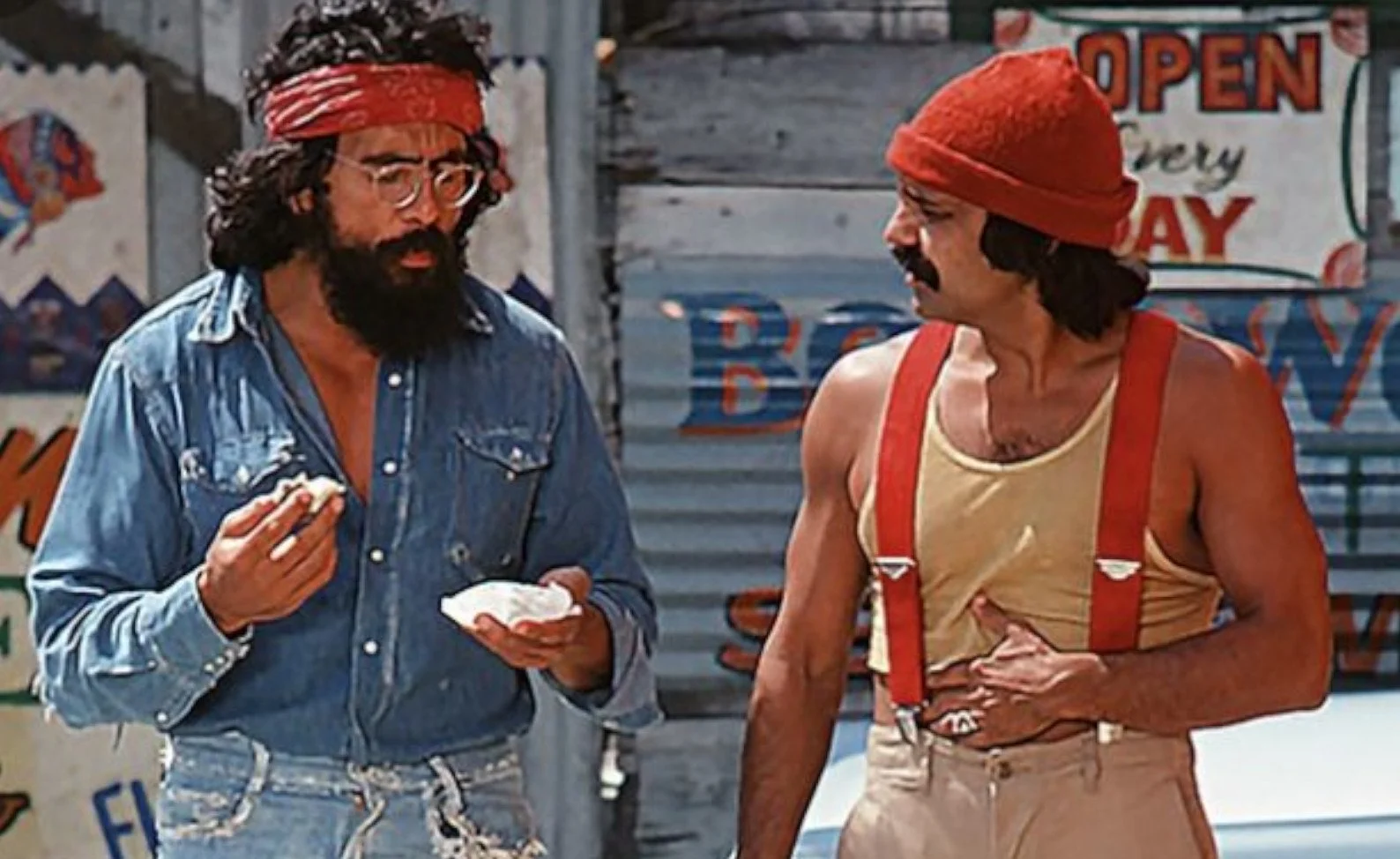 Cheech and Chong's Up in Smoke follows the misadventures of two stoners, Pedro de Pacas, a Mexican-American pot-smoking hitchhiker played by Cheech Marin, and Anthony "Man" Stoner, a wealthy, directionless hippie drummer portrayed by Tommy Chong. Their lives intersect when Man's car breaks down, leading to a series of chaotic events including a massive joint, a brief arrest, and an escape that culminates in them unknowingly smuggling a van constructed entirely of marijuana across the Mexican border. Chased by the inept Sgt. Stedenko, they embark on a road trip filled with drug-related humor and absurd situations, eventually forming a band to compete in a Battle of the Bands at the Roxy Theater, where they perform the song "Earache My Eye".